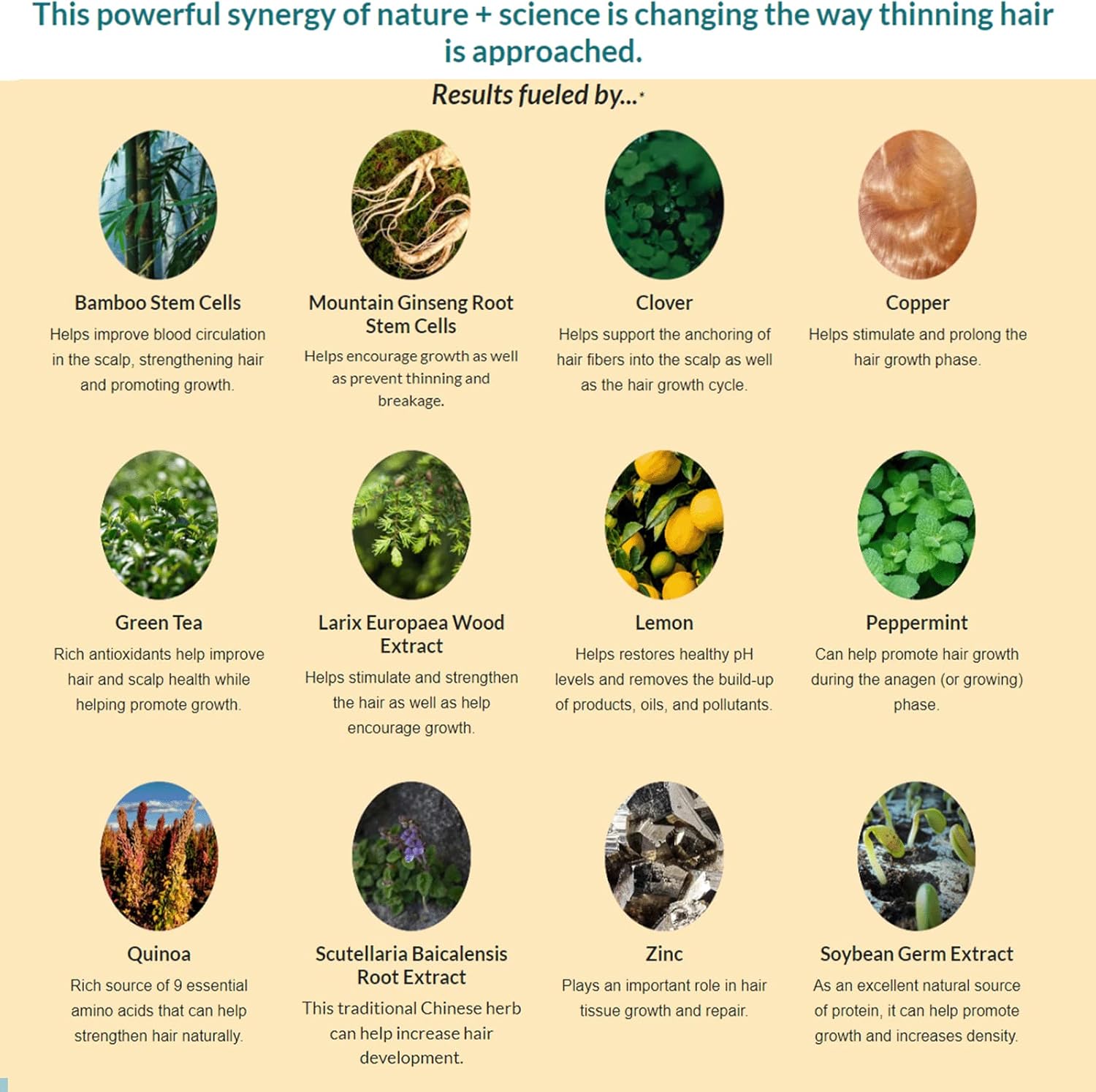 - 100 DRUGFREE A powerful combination of cuttingedge science and the harnessed power of centuriesold botanicals and extractsCUTTING EDGE SCIENCE 3 Different types of stem cells designed to target Thinning hair as well as Redensyl Capixyl Biacapil all at clinical strength Also contains Hyaluronic Acid AntiOxidants Peptides Amino Acids ProBiotic Complexes Nutrients and More