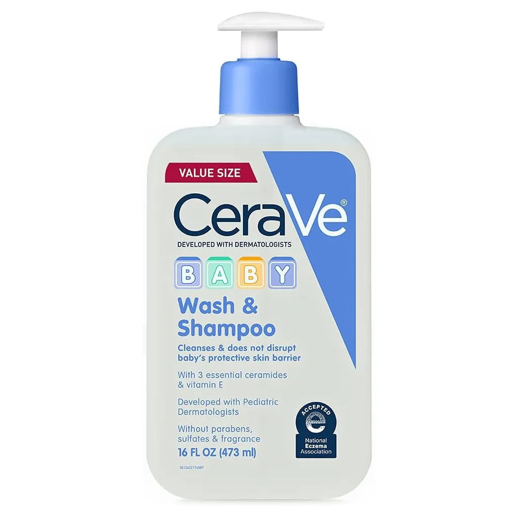 Developed with pediatric dermatologists, CeraVe Baby Wash & Shampoo contains 3 essential ceramides & vitamins to help maintain baby’s delicate skin barrier. This tear-free formula cleanses without irritation and leaves baby hair and skin feeling fresh and clean. This 2-in-1 product is ideal for a simple baby bath time and is dermatologist-tested for infants and toddlers skin.