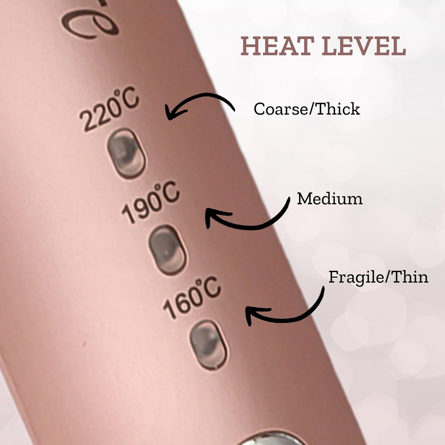 - 3 Temperature Settings ] This curler is tailored to your hair type offering three temperature settings ranging from 160C to 220C ensuring perfect results for hard normal or soft hair Achieve salonquality hair curls in less time
