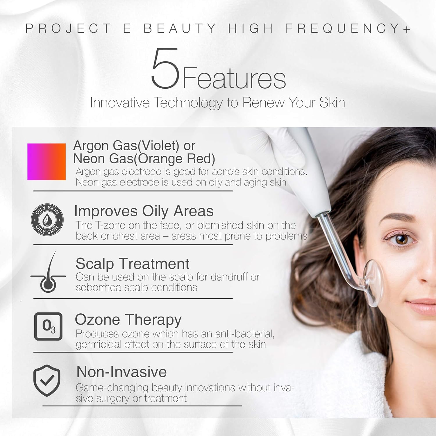 Project E Beauty Professional High Frequency Facial Machine D’arsonval Spot Removal Wand Skin Tightening Wrinkle Fine Lines Removal Face Lifting Puffy Eyes Therapy Treatment Device Neon Argon Gas